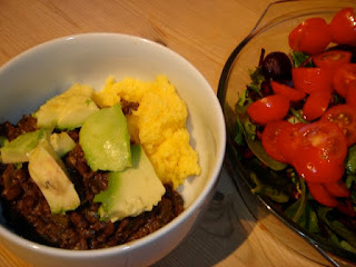 HE SAYS: Apart from stabbing myself in the hand as I tried to de-stone the avo, my first attempt at the new-wave bnz was a success. The herbs were herby and the spice was just right. The polenta could of been a little more porridge-like but I ain't complaining to the chef (I'm no masochist in the kitchen, however it seems). The salad was a double beetroot bill with thin raw slices and thick chunks of sweetfire pitting their wits against the stubbornly delish tomato bits.